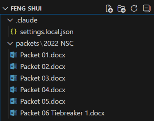 Claude Code is a system that can operate on a directory and perform a number of useful tasks to satisfy your natural language prompts. For instance, let’s create a new directory with 6 packets from the 2022 NSC. It looks something like this: