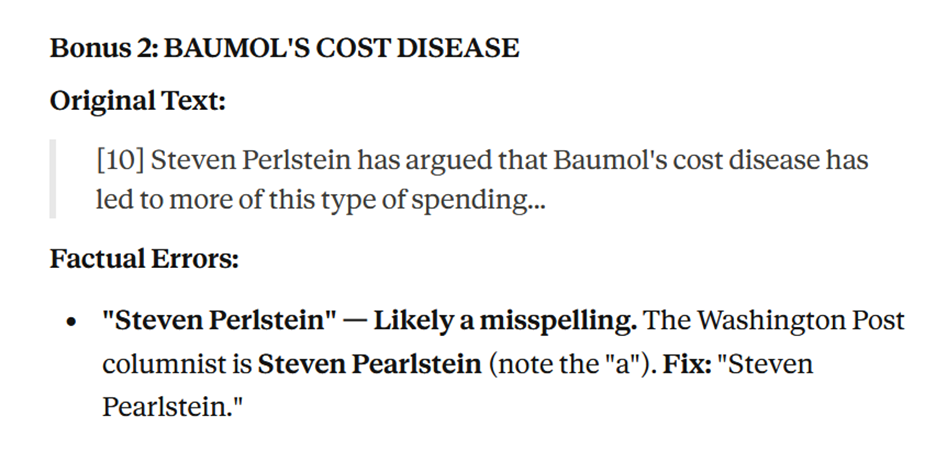 General copy-editing errors: In general, LLMs have gotten pretty good at copy editing, giving richer feedback that you’d get in a standard word processor.